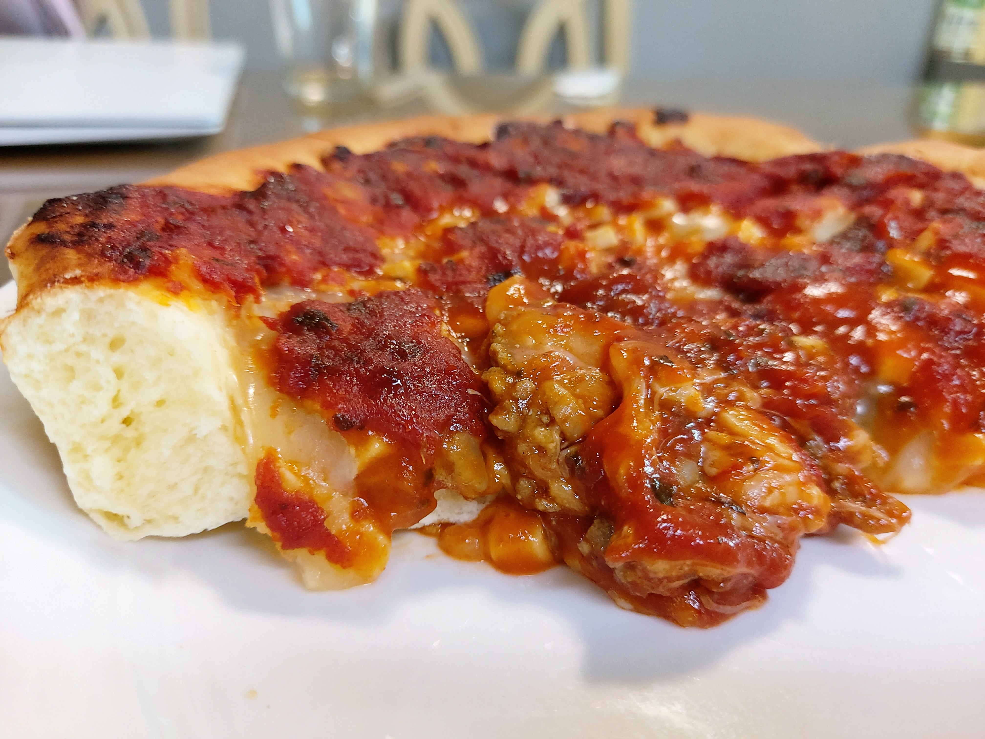 피자의 풍부한 맛과 치즈의 양에 놀랐다..