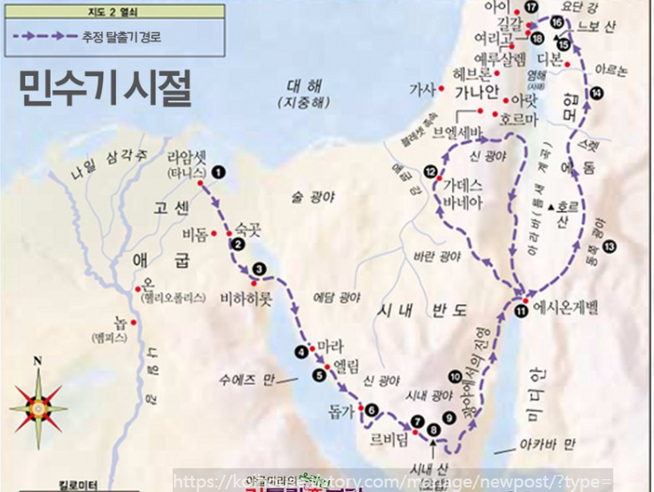 완전 쫄보가 되어버린 그들이 고센에서 출발하여 블레셋 땅을 지나서 가나안으로 가는 직선코스로서 거의 40일정도면 갈 수 있지만, 하나님께서는 그 short-cut으로 인도하지 않으셨다.